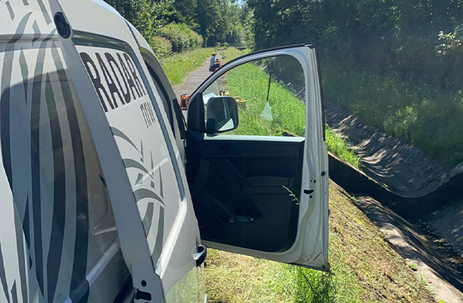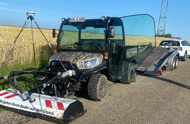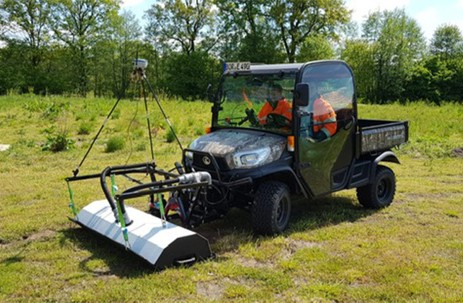 Seit Frühjahr 2019 hat GeoRADAR ein neues Flächen-Georadar im Einsatz. Unser geländefähiger Kubota ist mit einem hydraulischen Frontkraftheber zur Positionierung des Array-Systems ausgestattet.