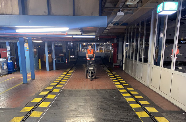 Für einen Samstag, als die Bänder bei Ford stillstanden, wurden wir beauftragt, in den Werken bei Köln Arbeiten an den Montagestraßen durchzuführen. Unser Ziel war es, bei den anstehenden Baumaßnahmen vorhandene Hindernisse kenntlich zu machen und Versorgungsleitungen nicht zu beschädigen. Daher ist es wichtig, die genaue Lage dieser zu kennen.