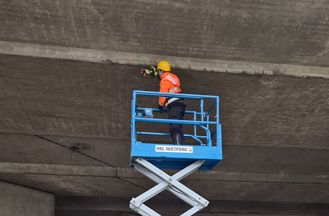 Vorort konnte unser Fachpersonal bereits schon einige Aussagen zu den aufgenommen Reflexionen und Daten in den Bodenplatten und dem Bauwerk treffen. Für eine genaue Analyse bedarf es einer Auswertung durch unser Team und spezielle Bearbeitungssoftware im heimischen Büro.