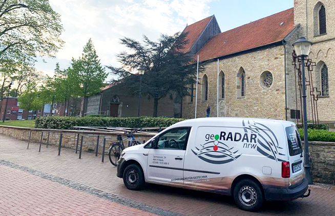 Es sollen nun die Geheimnisse der Kirchengeschichte gelüftet werden. Mit einem Bodenradar als Handwagen, einem ImpulseRadar inkl. Raptor sowie einem Structure Scan wurden die Grünflächen, das Mittelschiff und das Mauerwerk der Kirche St. Ludgerus Heek sondiert.